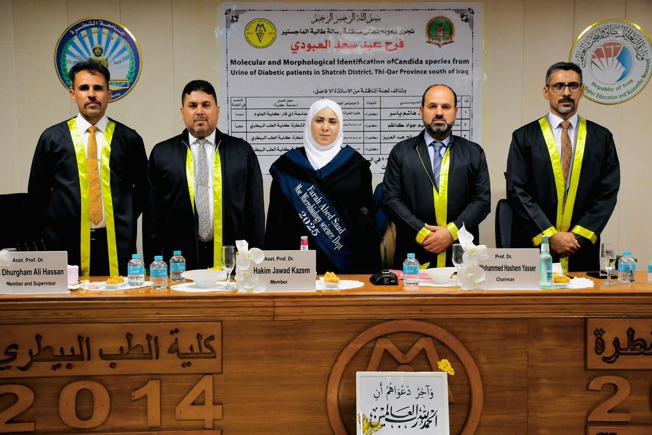 نوقشت في كلية الطب البيطري بجامعة الشطرة، اليوم الأحد الموافق 25 تشرين الأول 2025، رسالة الماجستير للطالبة فرح عبد سعد، والموسومة بعنوان