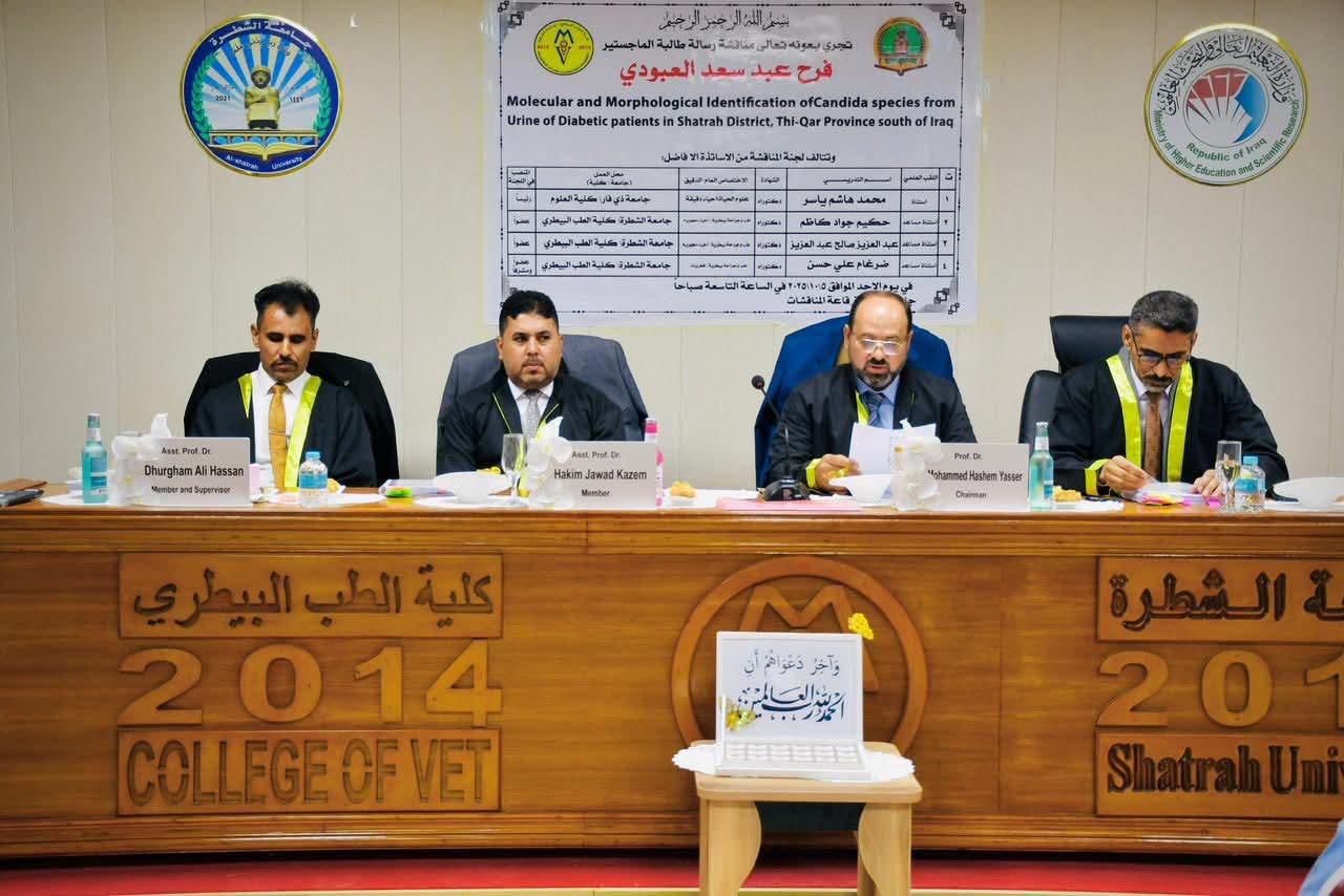 “التشخيص الجزيئي والشكلي لأجناس فطر الكانديدا المعزول من بول مرضى السكري”، وذلك على قاعة الحلقات النقاشية في الكلية.