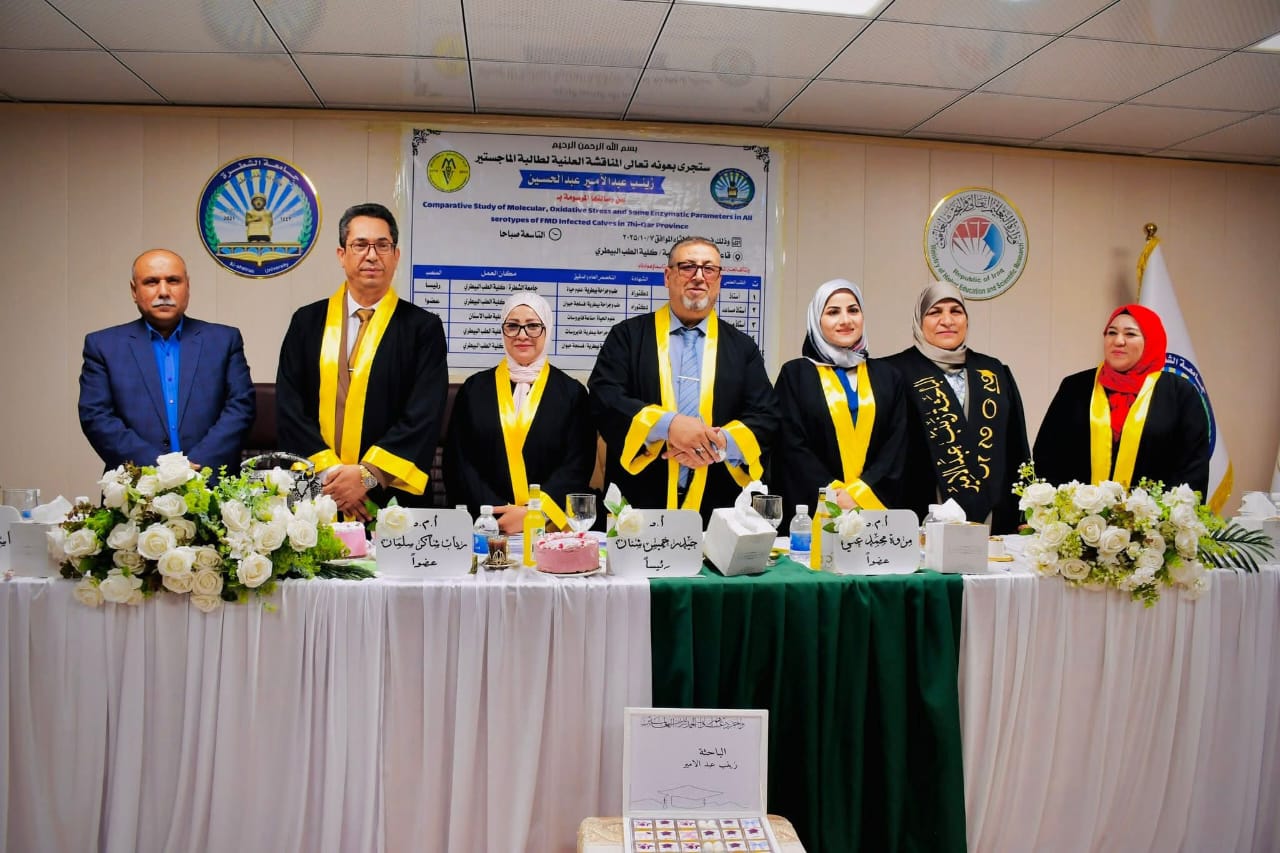 نوقشت في كلية الطب البيطري بجامعة الشطرة رسالة ماجستير للطالبة زينب عبد الأمير والموسومة بعنوان