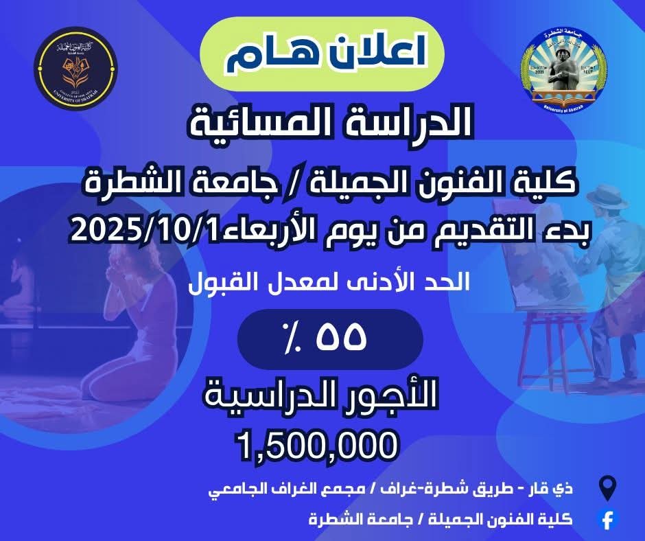 انطلاق التقديم للدراسة المسائية في كلية الفنون الجميلة / جامعة الشطرة
