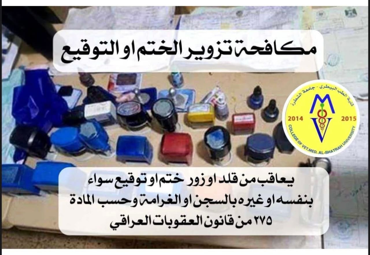 باشرت كلية الطب البيطري في جامعة الشطرة اليوم الاثنين الموافق 19 تشرين الأول 2025، بحملة توعوية ضد الفساد الإداري والمالي، وذلك استنادًا إلى توجيهات وزارة التعليم العالي والبحث العلمي ورئاسة الجامعة.