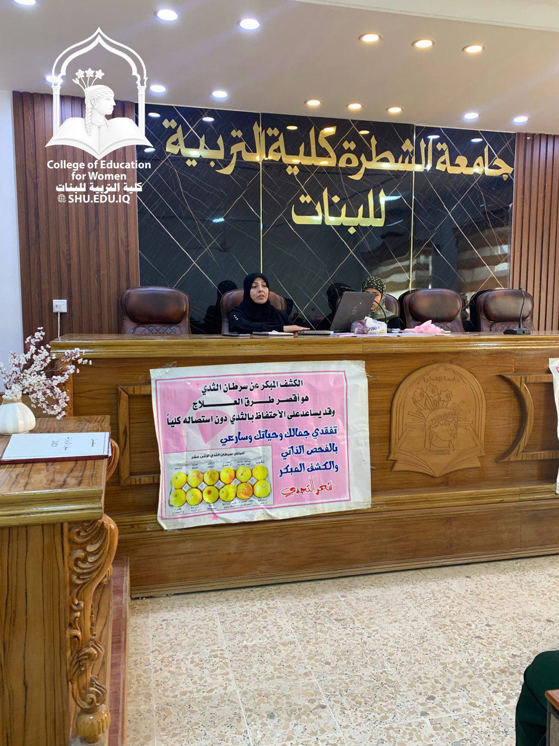 كلية التربية للبنات تقيم ندوة توعوية بعنوان: (الفحص الدوري والمبكر لسرطان الثدي)