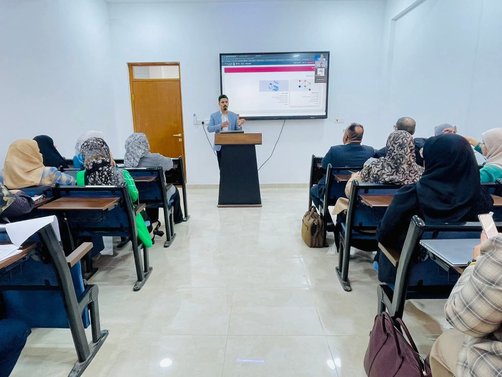 حاضر في الدورة م.م مختار جاسم ناصر مدير شعبة شؤون الطلبة في الكلية، حيث تضمنت التعريف بالمنصة وآلية استخدامها من قبل التدريسيين، إضافة إلى شرح كيفية الدخول إلى النظام ورفع المحاضرات الفيديوية الخاصة بالمواد الدراسية وتنظيم المحتوى التعليمي للطلبة.