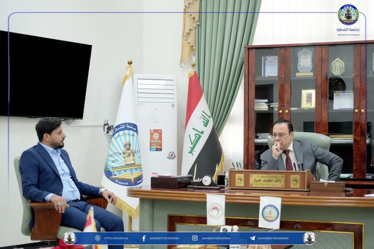 عقد مساعد رئيس جامعة الشطرة للشؤون الإدارية الأستاذ الدكتور رائد مجيد جبار، يوم الأحد 23 شباط 2026، اجتماعاً مشتركاً ضمّ لجنة الأعمال التطوعية في قسم شؤون الديوان وشعبة العمل التطوعي في قسم النشاطات الطلابية، وذلك لبحث سبل تعزيز العمل التطوعي داخل الجامعة وتنظيم الجهود خلال لشهر رمضان المبارك، تنفيذاً لتوجيهات الامانة العامة لمجلس الوزراء